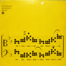 | 1984 | Epigenese Ensemble — ca. 14min für Flöte, Saxophon, Trompete, 2 Schlagzeuger, Violoncello und Klavier Produktion zur UA am 24.6.1984 in der Hochschule der Künste Berlin veröffentlicht auf : Instrumental- und Vokalmusik (HdK LP 4) © 1985 Hochschule der Künste Berlin (TELDEC-PRESS GmbH) — 66.23811 |